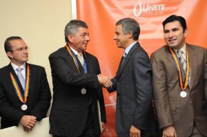 En la celebración del noveno aniversario de la Unión de Empresarios para la Tecnología en la Educación A.C. (UNETE), que se llevó a cabo en el Club de Industriales, Claudio X. González, presidente del patronato de UNETE, acompañado por el subsecretario de Educación Básica de la Secretaría de Educación Pública (SEP) Fernando González Sánchez, entregó la presea al secretario de Educación de Veracruz, Víctor Arredondo Álvarez.