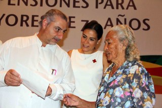 En cumplimiento a las disposiciones del gobernador Javier Duarte de Ochoa y su señora esposa, Karime Macías de Duarte, en el World Trade Center se entregaron este martes 591 cheques a igual número de beneficiarios. “Agradecemos este reconocimiento a los mayores de 70 años de edad, carentes de apoyo; con esta ayuda buscamos otorgarles una vida más digna y justa”, refirió la presidenta del DIF municipal, Luchy Bonilla de Manzur.