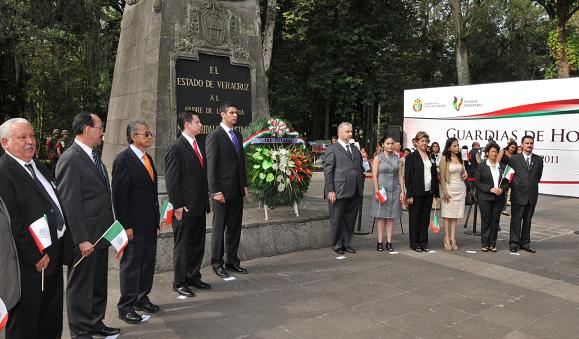 Posterior a la guardia de honor y la interpretación de los himnos Nacional y Veracruzano, se depositó una ofrenda floral y se firmó el libro de visitantes distinguidos.