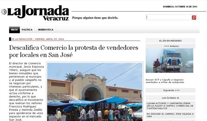 Que pertenecen al municipio y al pueblo xalapeño NO SE NEGOCIAN, dijo Villers, lo consigna la Jornada del 29 de abril de 2011, no lo estoy inventando –luego tienen la costumbre de decir eso para desacreditar a la gente, lo malo es cuando pasa lo contrario, porque como uno no tiene nada que perder, te vuelves despiadado, verdad que suena muy dramático- Espinoza Villers ha sido quien, entre otras cosas, no permitia, por ejemplo, que el café de la Parroquia del Edificio Nachita, pusiera mesas afuera del local, ahora ya las tiene, fue quien dijo que no se iban a vender los espacios de San José y ahora, hasta Michelle Servín González (la tercera en discordia) ha ido a echarse sus drinkys y bocadillos a alguno de los locales con venta de comida bien del mercado San José, ese que vio caer una araucaria centenaria para que no estropeara la vista de un conocido asadero xalapeño.
