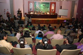 Los diputados Ricardo García Escalante, Paulina Muguira Marenco e Isela González Domínguez, presidente, secretaria y vocal de la Comisión Permanente de Ciencia y Tecnología de la LXII Legislatura Local; Rosa Enelva Vera Cruz y Armando Méndez de la Luz, durante la clausura de las actividades de la Semana de la Ciencia y Tecnología en Veracruz, realizada del 17 al 21 de octubre. Estuvieron presentes Heriberto Contreras Garibay, representante del Consejo Veracruzano de Ciencia y Tecnología (COVECYT); José Guillermo Ramos Moreno, representante del Colegio de Estudios Científicos y Tecnológicos del Estado de Veracruz (CECYTEV); así como investigadores, catedráticos, estudiantes, medios de comunicación y público en general.