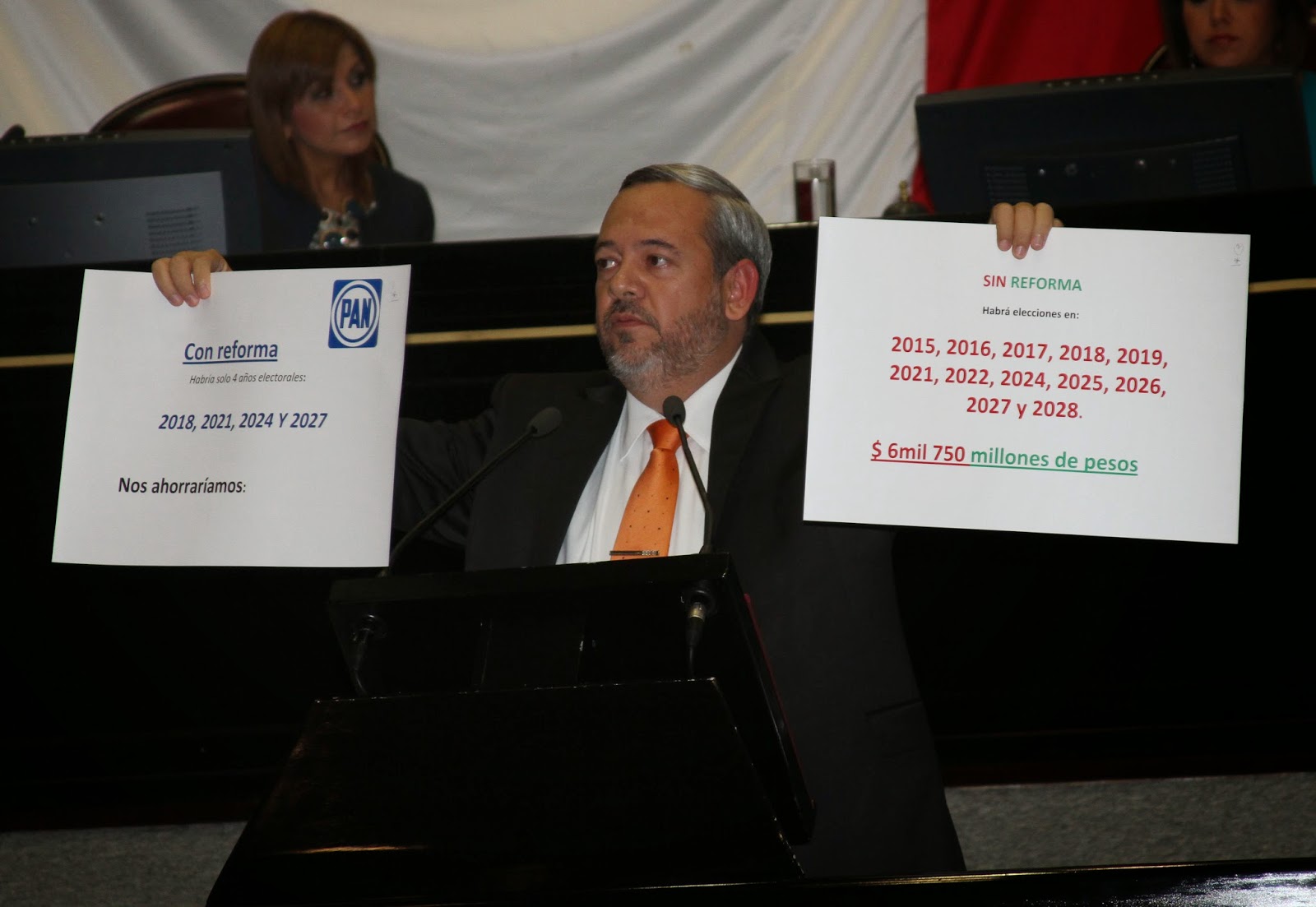El diputado indicó que se contempla la homologación de elecciones, así como la reelección de diputados locales y alcaldes, acciones que permitirán el ahorro de recursos en materia electoral.