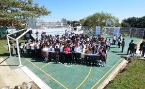 Entrega la construcción de una cancha deportiva en el Telebachillerato Colonia Higueras