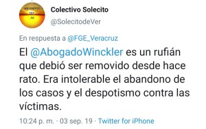Aseguró que de los casos que existen en el Colectivo Solecito Veracruzano no hay ni un solo imputado durante la administración de Winckler al frente de la Fiscalía.