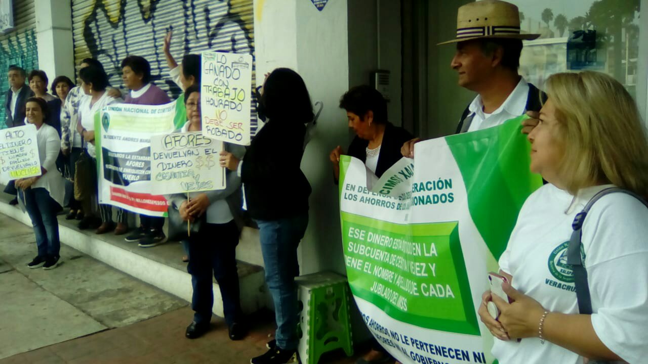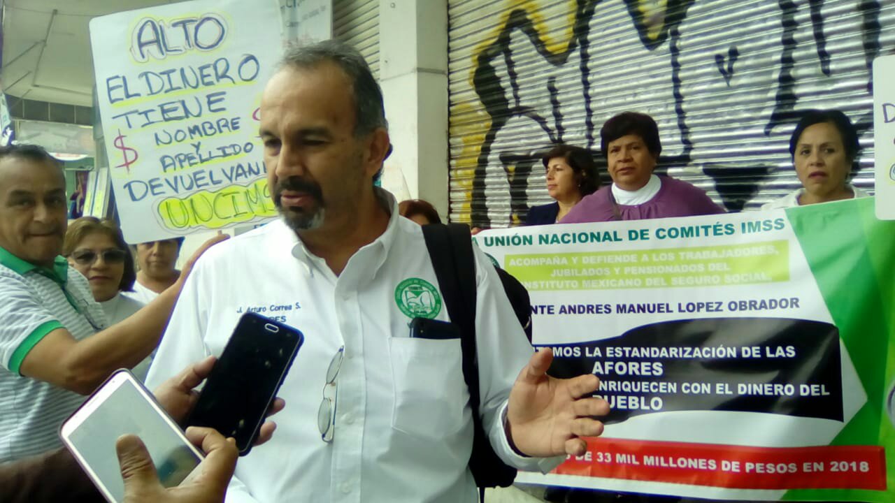 or Rafael Vazquez. Xalapa Ver a 9 de octubre del 2019.El representante de los jubilados del IMSS,José Arturo Correa Sanchez, dio a conocer que están llevando a cabo plantones en diferentes partes de la ciudad,con estas protestas pacíficas, los Miembros del Comité Xalapa,de la Unión Nacional de Comités del Seguro Social,, hacen público su repudio al actual régimen de jubilados y pensionados que empobrecen al pueblo, ya qué les están robando sus recursos,depositados en las sub cuentas de ahorro personal,los jubilados cada vez más pobres después de una vida de trabajo Le hacen un llamado al presidente de México Andrés Manuel Lopez Obrador,a la Unión Nacional de Comités del IMSS,en donde les piden que detengan éste flagrante robo de sus ahorros,de sus AFORES, las subcuencas del SAR 92,su retiró parcial por desempleo, las subcuentas del SAR 97, y sobre todo la subcuenta de cesantia y vejez, que es la subcuenta que representa el 60% del dinero ahorrado. La lucha de la Unión Nacional de Comités IMSS,continuará hasta derogar la jurisprudencia 185/2008 en la cámara de diputados y luego en la cámara de senadores, para que la suprema corte, sea realmente de justicia y no vuelva a emitir interpretaciones a modo de justificar el robo flagrante del estado a los jubilados.