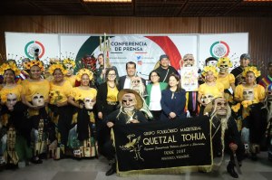 Al finalizar la rueda de prensa, el grupo artístico presentó una muestra de lo que se vivirá en el Xantolo. La diputada veracruzana “Maru” Pinete Vargas explicó que cada danzante representa el alma de los difuntos que retornan en estas fechas para convivir con sus seres queridos, en el mundo de los vivos.