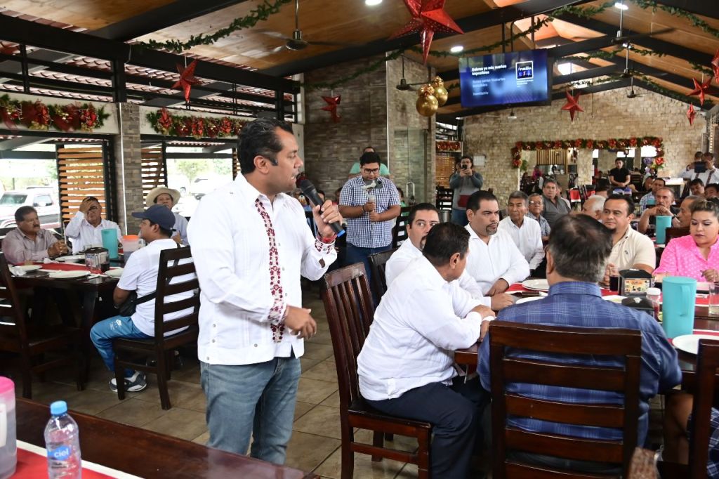 Martínez de la Torre, Ver., 10 de enero de 2023.- El coordinador estatal del movimiento “Que Siga López, Estamos Agusto”, Sergio Gutiérrez Luna, se reunió con un amplio frente de ciudadanos, empresarios, empacadores y exportadores de limón persa, académicos, pensionados y jubilados, activistas sociales, ex alcaldes y líderes de diferentes partidos, interesados en la continuidad de la Transformación convocados por el empresario Eduardo Sánchez Macías.