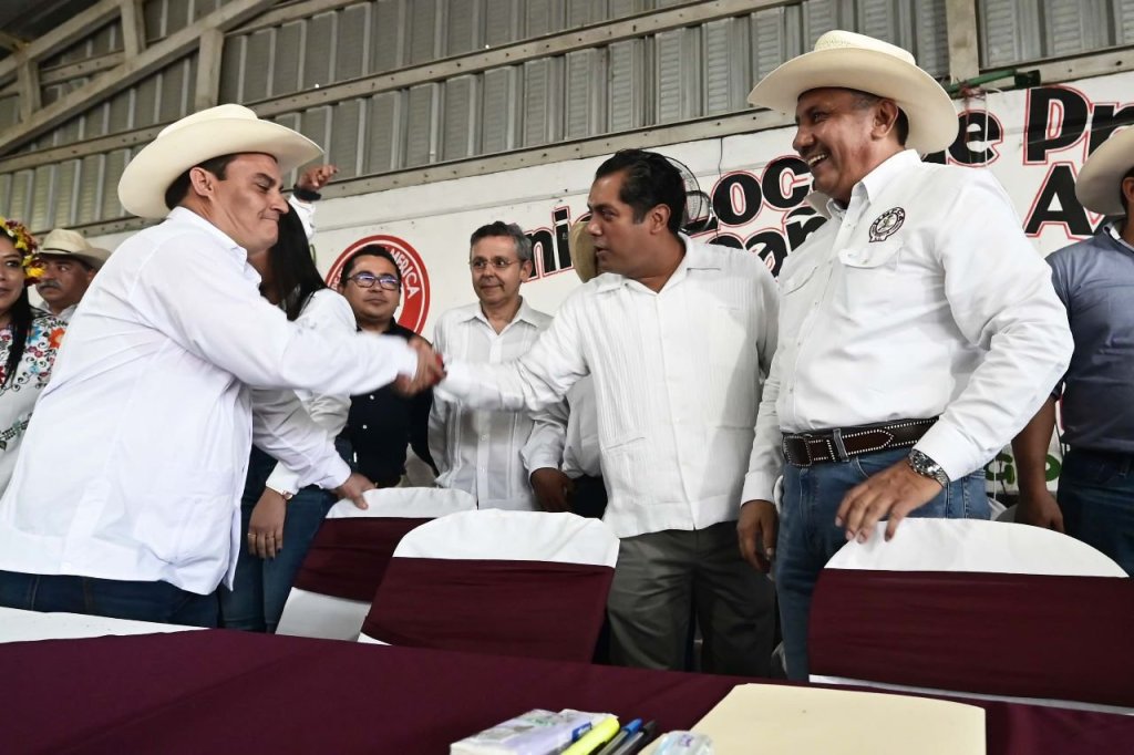 En multitudinaria reunión en el ingenio San Cristóbal, en Carlos A. Carrillo, les corean “Presidente, presidente” y “Gobernador, gobernador”