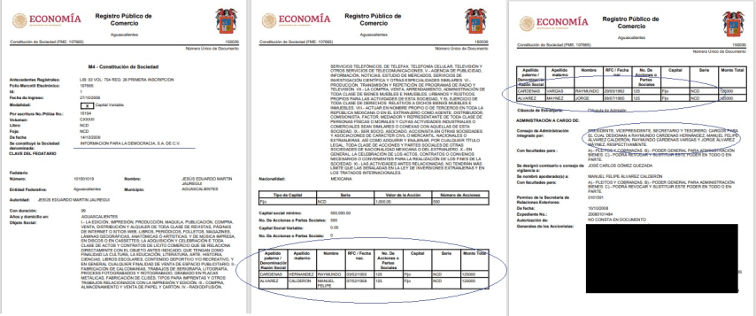 No obstante, en el caso de Información para Democracia, la plataforma reporta a Jorge Álvarez Máynez como socio activo con 125 acciones ―la misma participación que tiene cada uno de los socios, 25%― y no tiene indexado ningún registro sobre el retiro, venta o donación de la participación del diputado. Se le pidió copia del acta respectiva, pero quedó pendiente hasta ahora.
