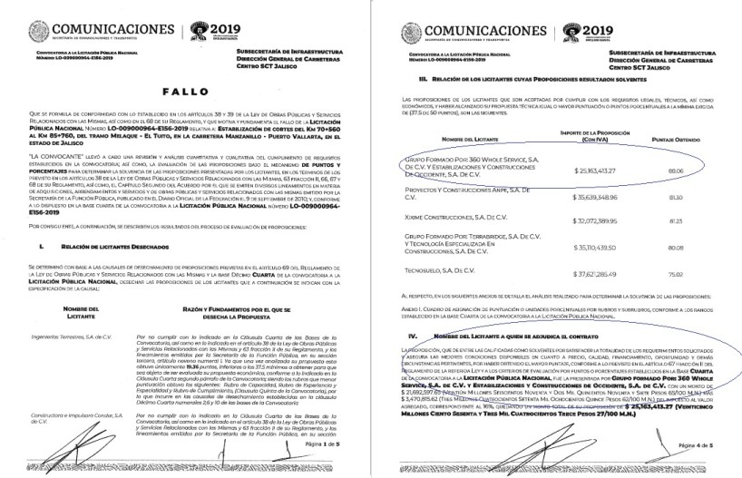En junio de 2019, el diputado emecista Eduardo Ron Ramos, obtuvo un contrato de la Secretaría de Comunicaciones y Transportes (SCT) para su empresa 360 Whole Service, para efectuar trabajos de “estabilización de cortes del Km 70+560 al Km 85+760, del tramo Melaque – El Tuito, en la carretera Manzanillo – Puerto Vallarta, en el estado de Jalisco”, por un monto de 25.16 millones de pesos.