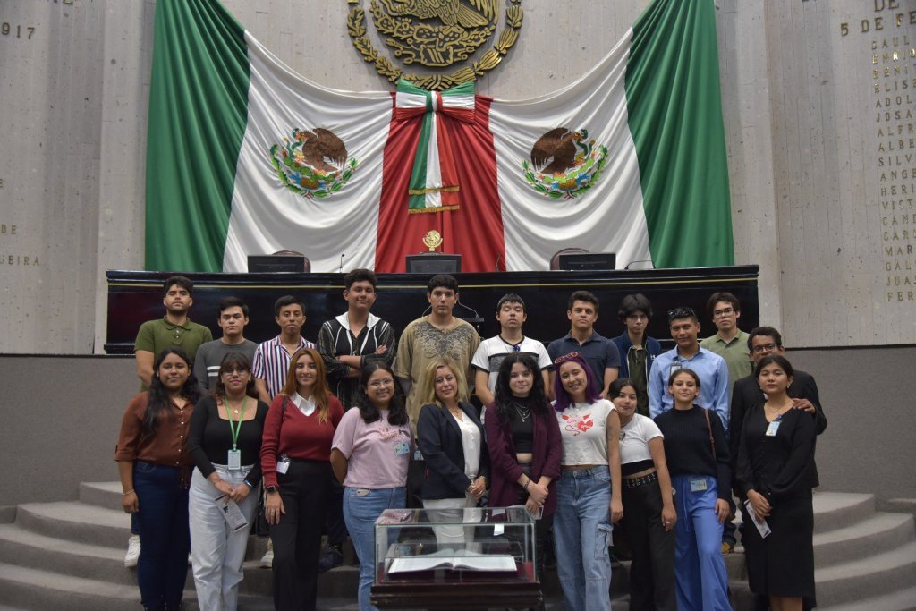 Posteriormente, realizaron el recorrido por las diferentes áreas que conforman el Congreso del Estado, como la biblioteca José María Mata, el auditorio Sebastián Lerdo de Tejada, el Archivo y las oficinas de las y los representantes populares.