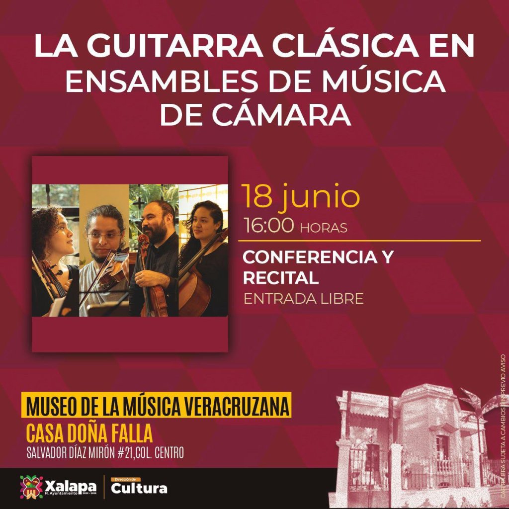 De igual manera, a las 17:00 horas en el Centro Recreativo Xalapeño, el maestro Jair Torres Baizabal ofrecerá su espectáculo musical “Romancero” Sentimiento Latinoamericano”; y en paralelo, en el Parque Juárez, se podrá bailar al ritmo del danzón. Finalmente, a las 18:00 horas, se ofrecerá la conferencia y recital “La Guitarra Clásica en Ensamble de Música de Cámara”, en el Museo de la Música Veracruzana.