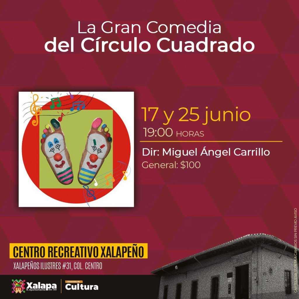 El 17 de junio a las 12:00 horas, el Colectivo Xalláhuac presentará un “Canto Coral para todos” en el Auditorio del IMAC; y a las 19:00 horas en el Centro Recreativo Xalapeño se presentará “La Gran Comedia del Círculo Cuadrado”, dirigida por Miguel Ángel Carrillo.