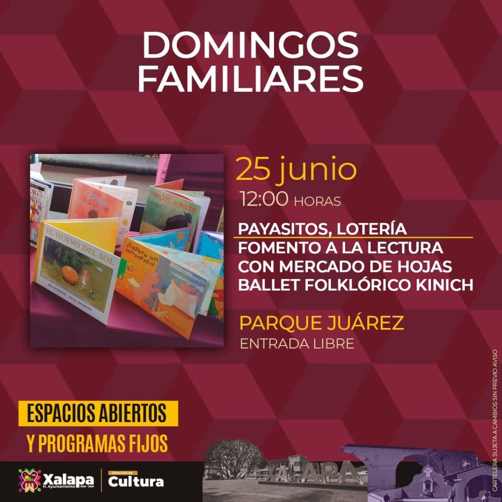 El 25 de junio a las 10:00 horas en el Museo de la Música Veracruzana, se impartirá el taller interdisciplinario de fomento a la creatividad lectora «El artes de los elementos»; a las 12:00 horas, dentro del programa «Domingos Familiares», los asistentes al parque Juárez disfrutarán del Ballet Folklórico Kinich, además de lotería mexicana, fomento a la lectura, show de payasitos y mercado de hojas; y a las 17:00 horas en este mismo lugar se podrá bailar al ritmo del danzón.