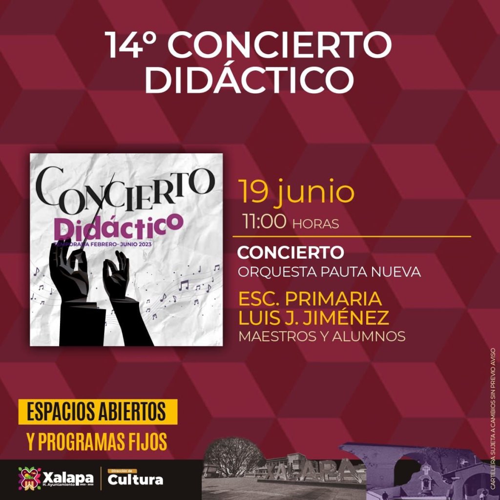 Por otro lado, este lunes a las 11:00 horas, la Orquesta Pauta Nueva estará ofreciendo un concierto didáctico en la Escuela Primaria «Luís J. Jiménez»; mientras que a las 16:00 horas, habrá una reunión de cuentistas en el Centro Recreativo Xalapeño. También, a las 18:00 horas en el Teatro JJ Herrera, la Orquesta Sinfónica Infantil y Juvenil de la Secretaría de Educación de Veracruz (SEV), homenajeará a Los Beatles; y a las 19:00 horas en la plaza San José se proyectará una película dentro del programa «Policinema».