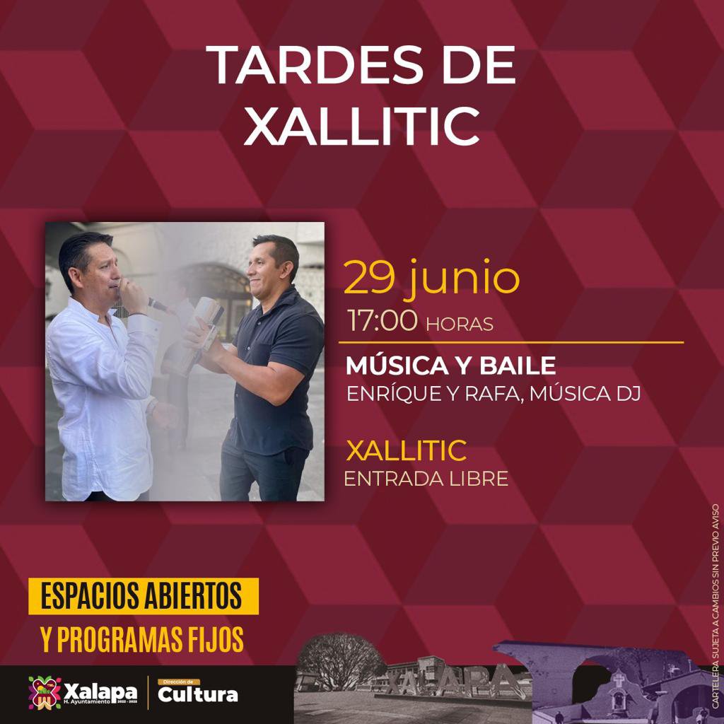 Adicionalmente, el jueves 29 de junio a las 17:00 horas, Enrique y Rafa y música de DJ pondrán su sabor a las Tardes de Xallitic; a las 18:00 horas en el Museo de la Música Veracruzana habrá un dúo de piano y guitarra con obras de M. Castelnuovo, Tedesco y Giulio Regondi; a las 19:00 horas, en el Teatro JJ Herrera, Eduardo Santiago interpretará la obra “ Cocinar el Amor” de Hugo Salcedo; y en el Centro Recreativo Xalapeño se proyectará la película “Esperando la Felicidad” (2002) de A. Sissako, dentro del Ciclo de Cine Africano.