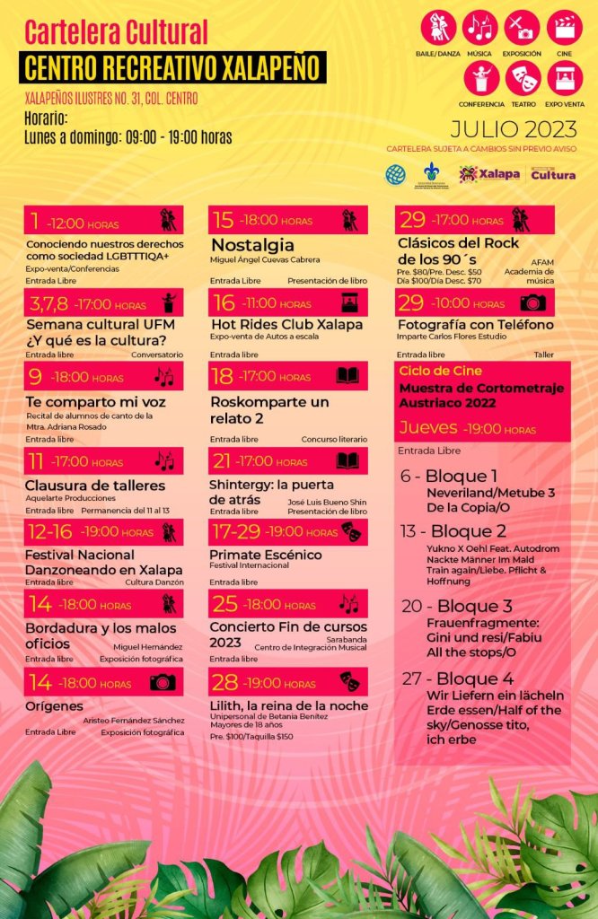 Más información y detalles de todos los eventos los puede consultar en la página de Facebook de Cultura Xalapa.
