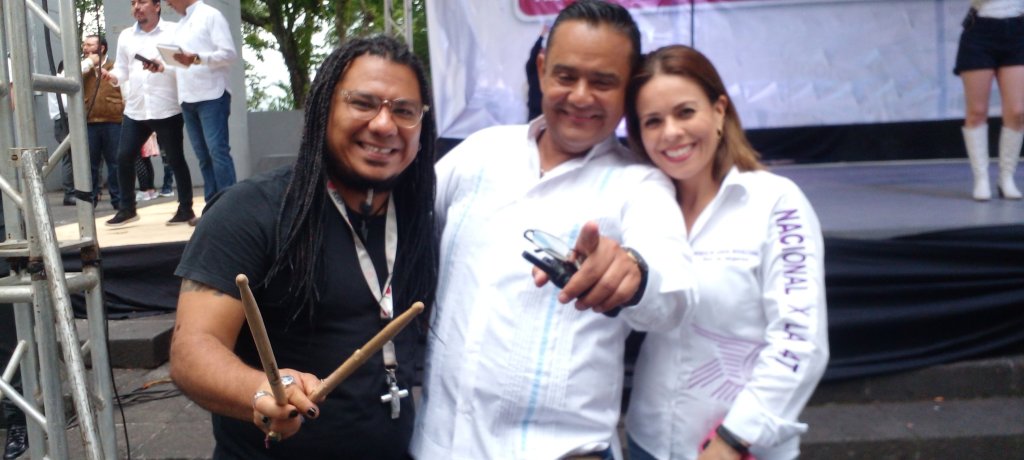 Alejandro Devaux, su compañera de vida y el amigo líder de Batucada Xalapa.