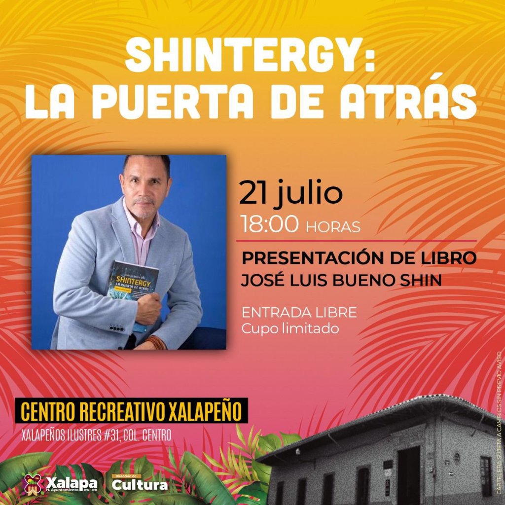 El viernes 21 a las 18:00 horas en el Centro Recreativo Xalapeño, José Luis Bueno Chin presentará su libro «Shintergy: la puerta de atrás» y en el mismo horario, pero en el Museo de la Música Veracruzana, Foro Cuatro Artes Escénicas presentará la obra «Hoy estreno». Adicionalmente, a las 19:30 horas en el Teatro JJ Herrera será la muestra internacional dentro del Festival Internacional Primate Escénico 2023.