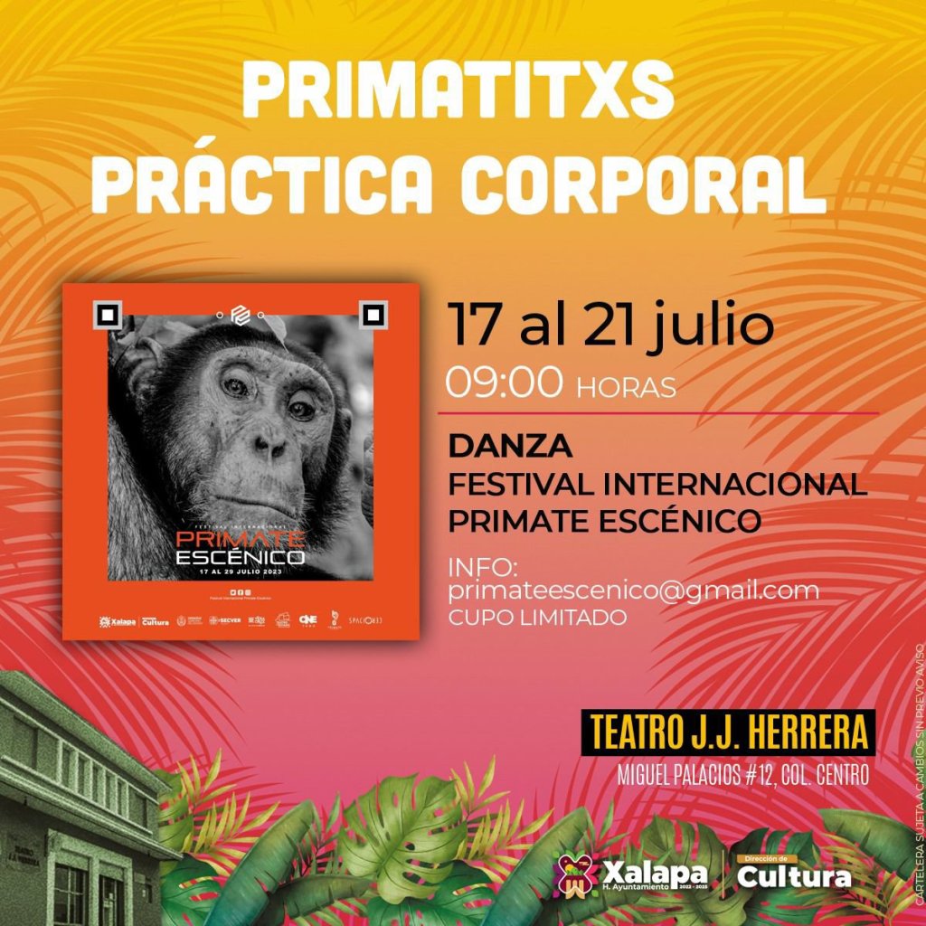 Las artes escénicas se tomarán a Xalapa del 17 al 29 de julio cuando se lleve a cabo la octava edición del Festival Internacional Primate 2023, que contará con la presencia de delegaciones provenientes de Rusia, Paraguay, Argentina, Colombia, Costa Rica y Panamá.