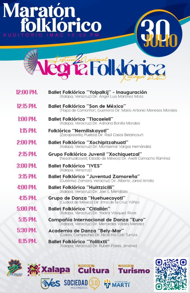 Además estarán los ballets xalapeños: «Yolpalkij», «Tlacaelell», «Xochipitzahuatl», «Huittzicilli», «Citlallán», «Yolilixtli», «Compañía Internacional de Danza Euro», «Ballet Folklórico del IVES», así como el «Ballet Folklórico Juventud Zamoreña», del municipio de Gutiérrez Zamora.
