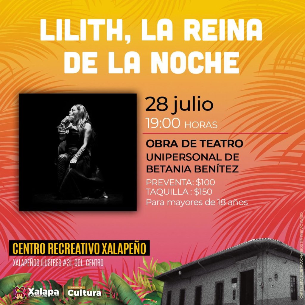 El 28 a las 19:00 horas, Betania Benítez presentará su obra «Lilith, la Reina de la Noche» en el Centro Recreativo Xalapeño; y en paralelo, Estela Lucio presentará su espectáculo de danza y teatro «Tierra, Luna y Mar» en el Museo de la Música Veracruzana.