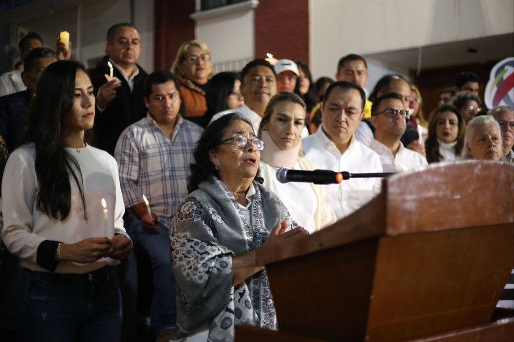 Acompañado por su esposa, la señora Mariana Yorio y con velas encendidas en memoria de las víctimas de la inseguridad, el candidato exigió un alto a la violencia cotidiana y creciente, a los feminicidios, a los secuestros, a los asaltos, a las extorsiones.