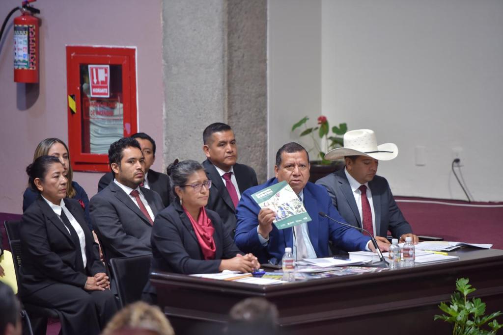 Este día, dentro del periodo de comparecencias con motivo de la Glosa del Sexto Informe de Gobierno, las diputadas Dulce María Hernández Tepole, Guadalupe Vázquez González y Juan Tress Zilli, presidente, secretaria y vocal de dicha comisión, recibieron al responsable de la dependencia estatal, Evaristo Ovando Ramírez, a quien cedieron el uso de la voz.