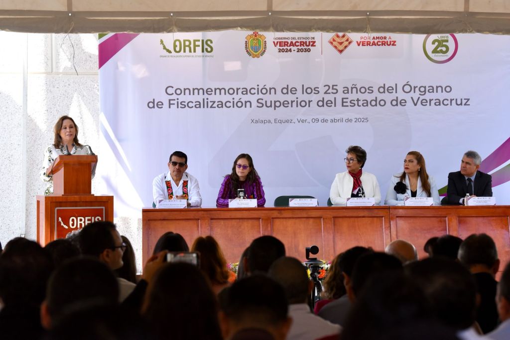 Xalapa, Ver., 09 de abril de 2025.- La LXVII Legislatura del Estado de Veracruz, representada por la presidenta de la Mesa Directiva, diputada Tanya Carola Viveros Cházaro, y por el presidente de la Junta de Coordinación Política (Jucopo), diputado Esteban Bautista Hernández, atestiguó la conmemoración de los 25 años del Órgano de Fiscalización Superior del estado (Orfis).