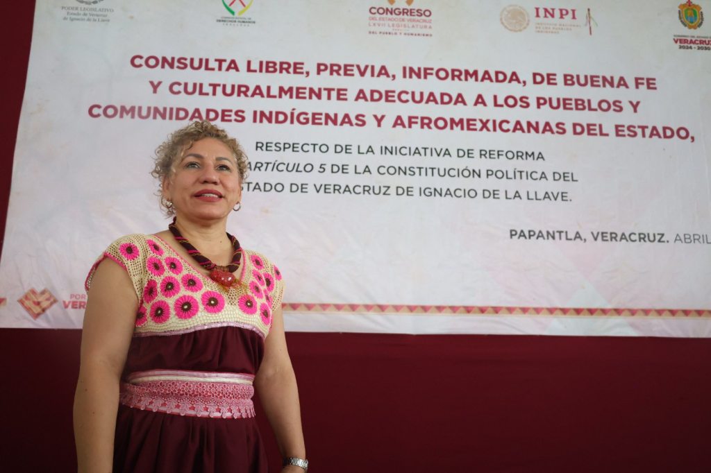 En Papantla, la secretaria de la Comisión de Asuntos Indígenas y de las Comunidades Afrodescendientes y representante del Distrito VI, diputada Miriam García Guzmán, encabezó el encuentro en el que se realizaron las etapas de acuerdos previos e informativa y reconoció el interés de la población y la labor de organismos como el Instituto Nacional de los Pueblos Indígenas (INPI) y la Comisión Estatal de los Derechos Humanos de Veracruz (CEDHV).