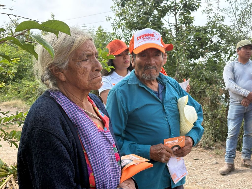 Acompañada por Isaías Flores Santillán, candidato a síndico y destacado productor local de truchas, café, pimienta y limón, Trujillo Ortiz propone un gobierno que escuche y atienda las necesidades de los campesinos.