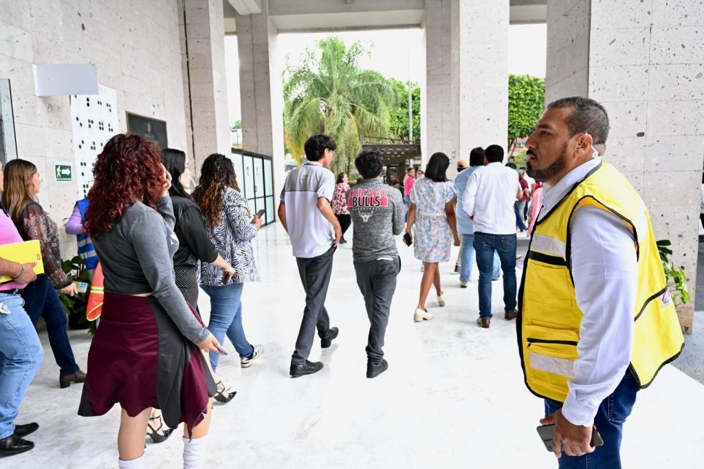 La Unidad Interna de Protección Civil está conformada por 50 personas y la integran las brigadas de Primeros Auxilios, Evacuación, Rescate y Combate de Incendios. Durante el simulacro, se realizaron diversas ejemplificaciones del rescate de personas y la atención médica que se dispone para valorar estados de salud.