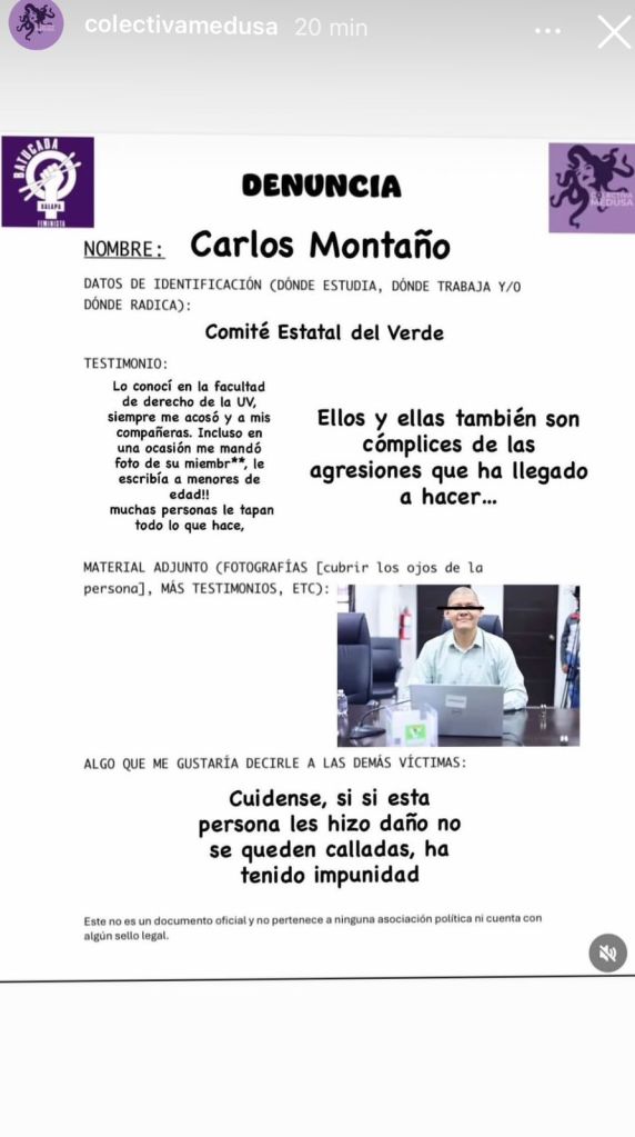 ¿Qué le sabe Carlos Montaño a la dirigencia del Verde? ¿Qué favores le debe Carlos Marcelo Ruiz Sánchez para preferir el descrédito público antes que la congruencia ética? El silencio del Verde ante las denuncias de las estudiantes de la UV y la gravedad de los señalamientos por acoso a menores es, en sí mismo, un grito de culpabilidad.